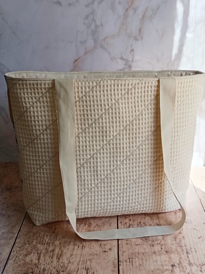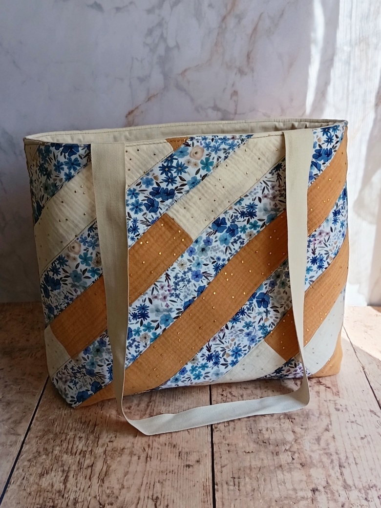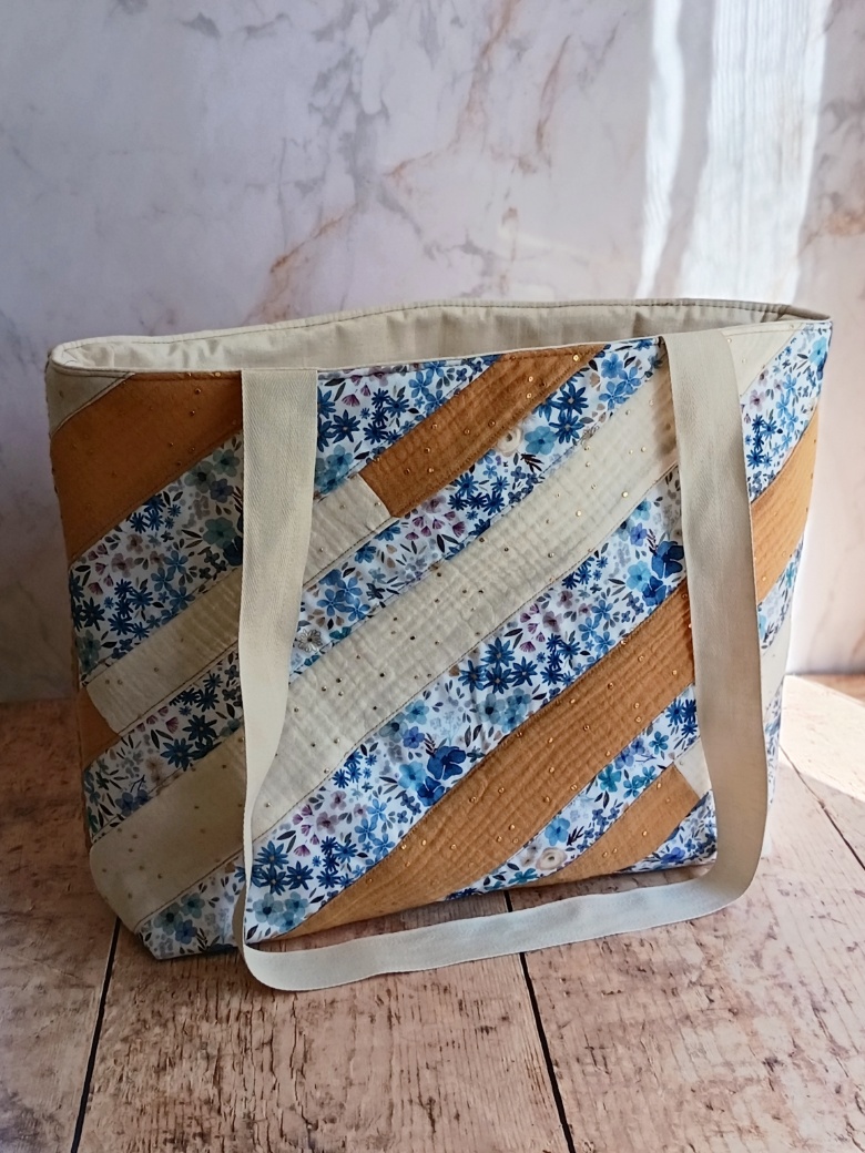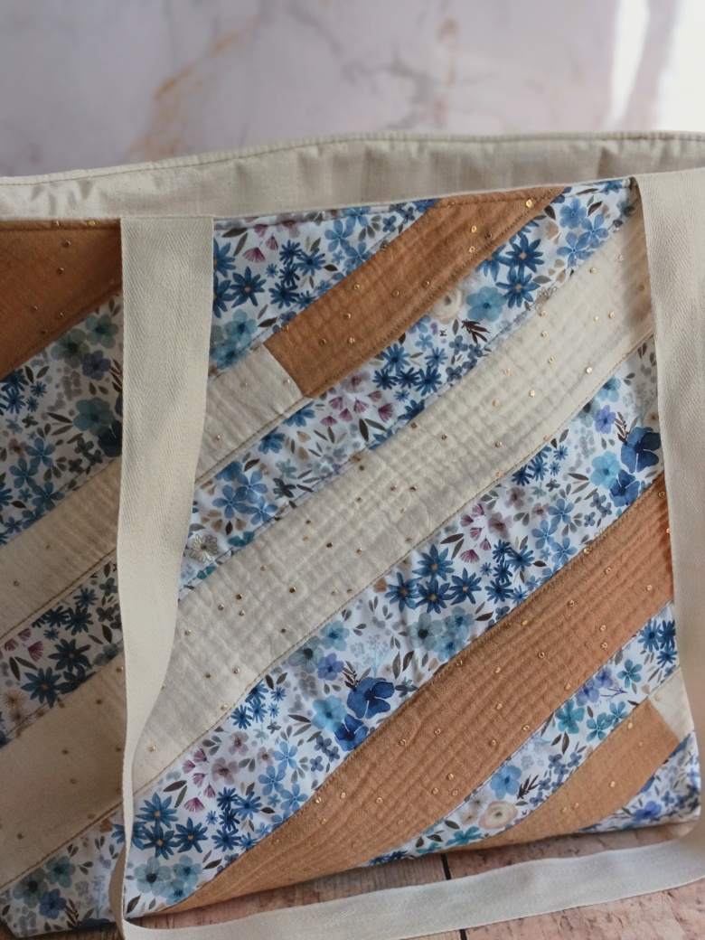 Chaque pièce est unique, cousue avec soin dans mon atelier. En créant ce cabas textile éco-responsable, je transforme mes chutes de tissus en un objet utile et beau. C’est une démarche de résistance contre la fast-fashion, valorisant le travail bien fait et le respect des ressources textiles.