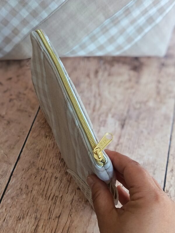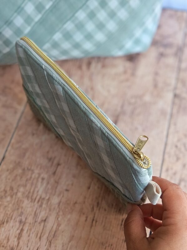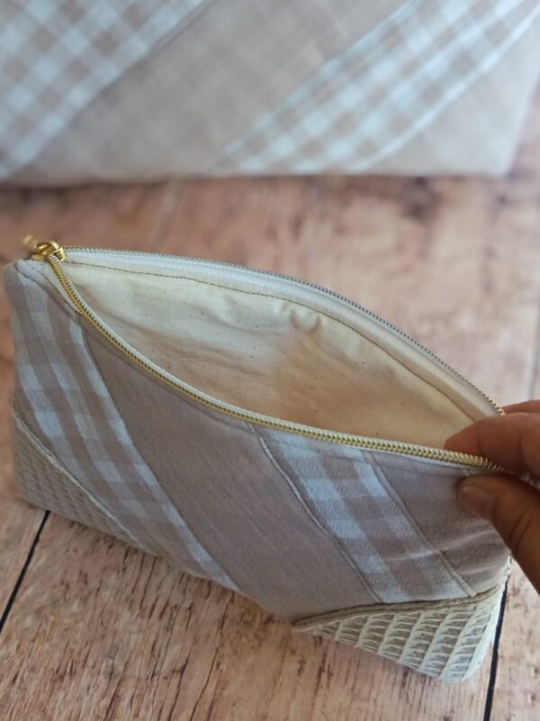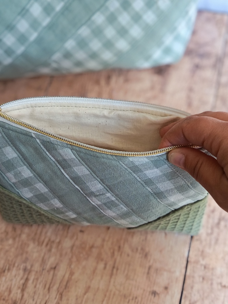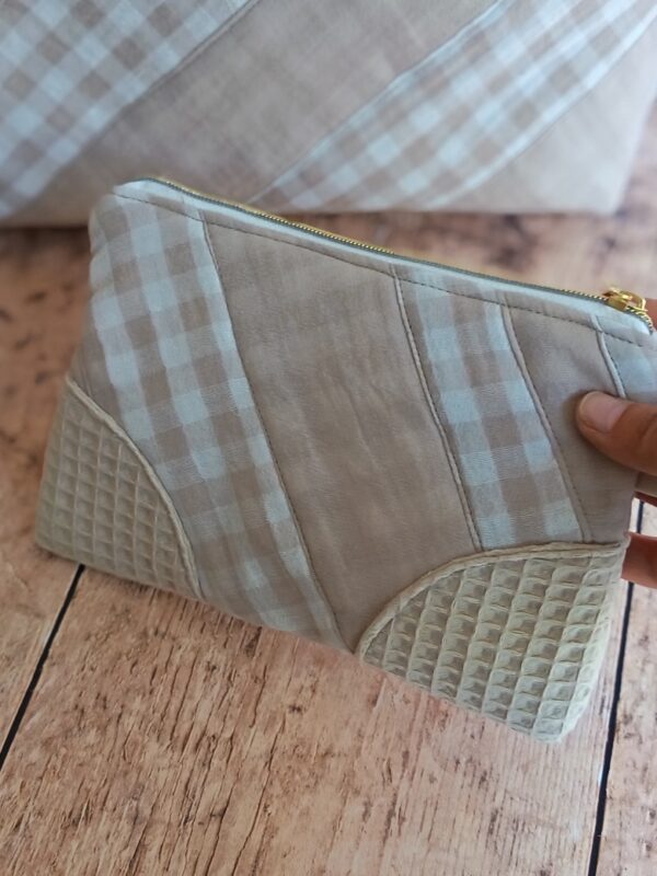 Complétez votre organisation avec cette pochette de rangement artisanale issue de ma collection « Nuage Vichy ». Parce que le bien-être domestique passe par des objets qui ont une âme, j’ai conçu cet accessoire pour accueillir vos petits trésors. Que ce soit pour vos cosmétiques, vos papiers ou vos essentiels de sac, elle apporte une touche de douceur organisée à votre quotidien.