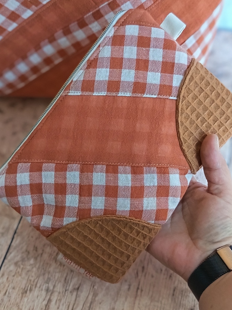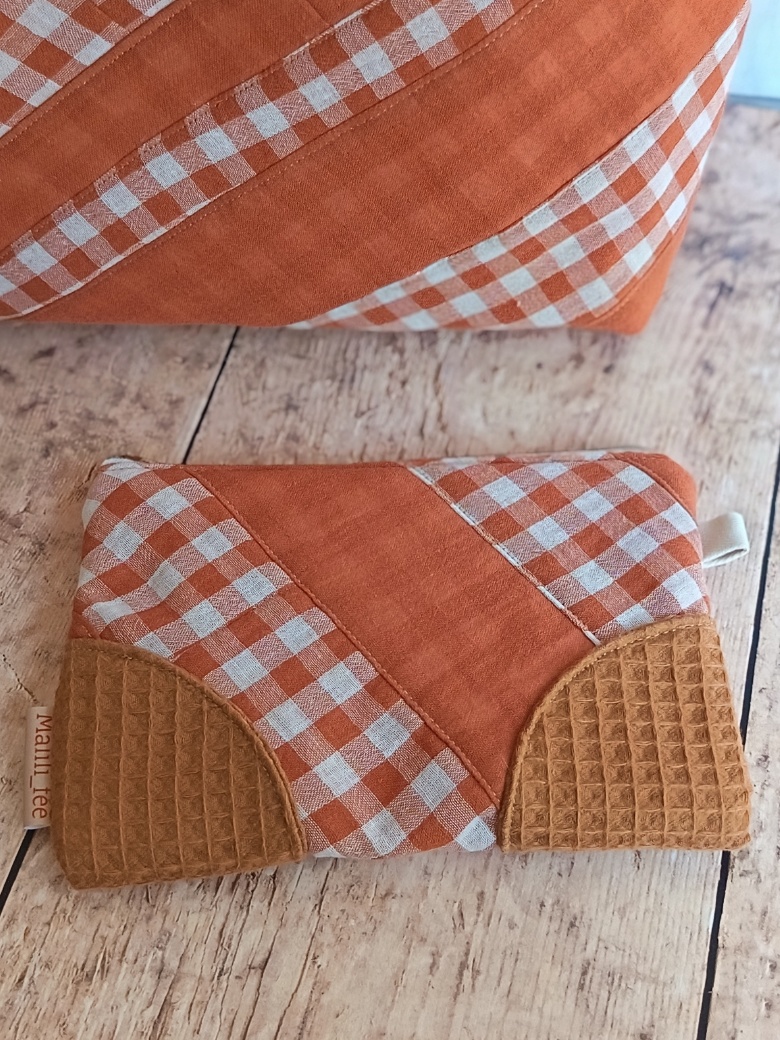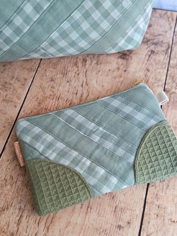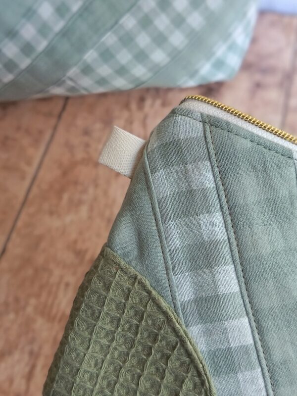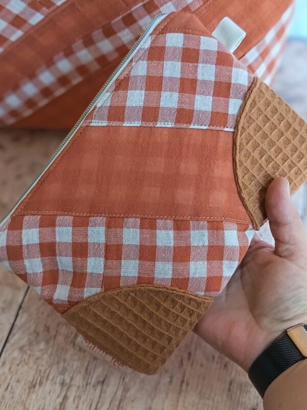 L’alliance des textures et des couleurs Le caractère unique de cette pièce réside dans le travail d’assemblage. En mariant le motif Vichy et le nid d’abeille assorti (disponible en lin, terracotta ou vert pâle), je crée un contraste tactile très agréable. Ce choix de matières garantit également une excellente tenue dans le temps. En choisissant cette pochette de rangement artisanale, vous soutenez un artisanat français qui valorise chaque fibre de tissu.