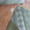 Matières authentiques : Un mélange de coton Oeko-Tex issus de mes chutes et de tissu nid d’abeille texturé.
